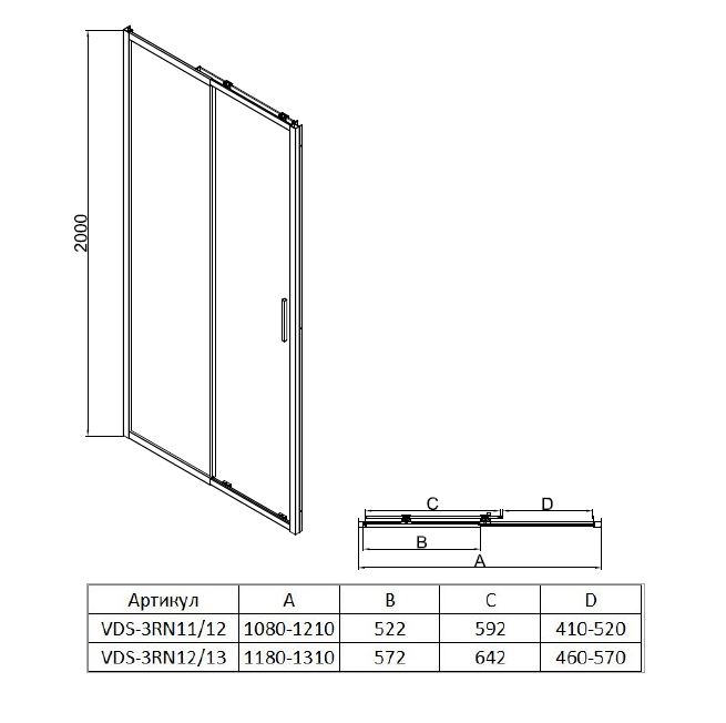 Душевая дверь в нишу Vincea Rapid-N VDS-3RN12/13CL 120/130 см, профиль хром |
