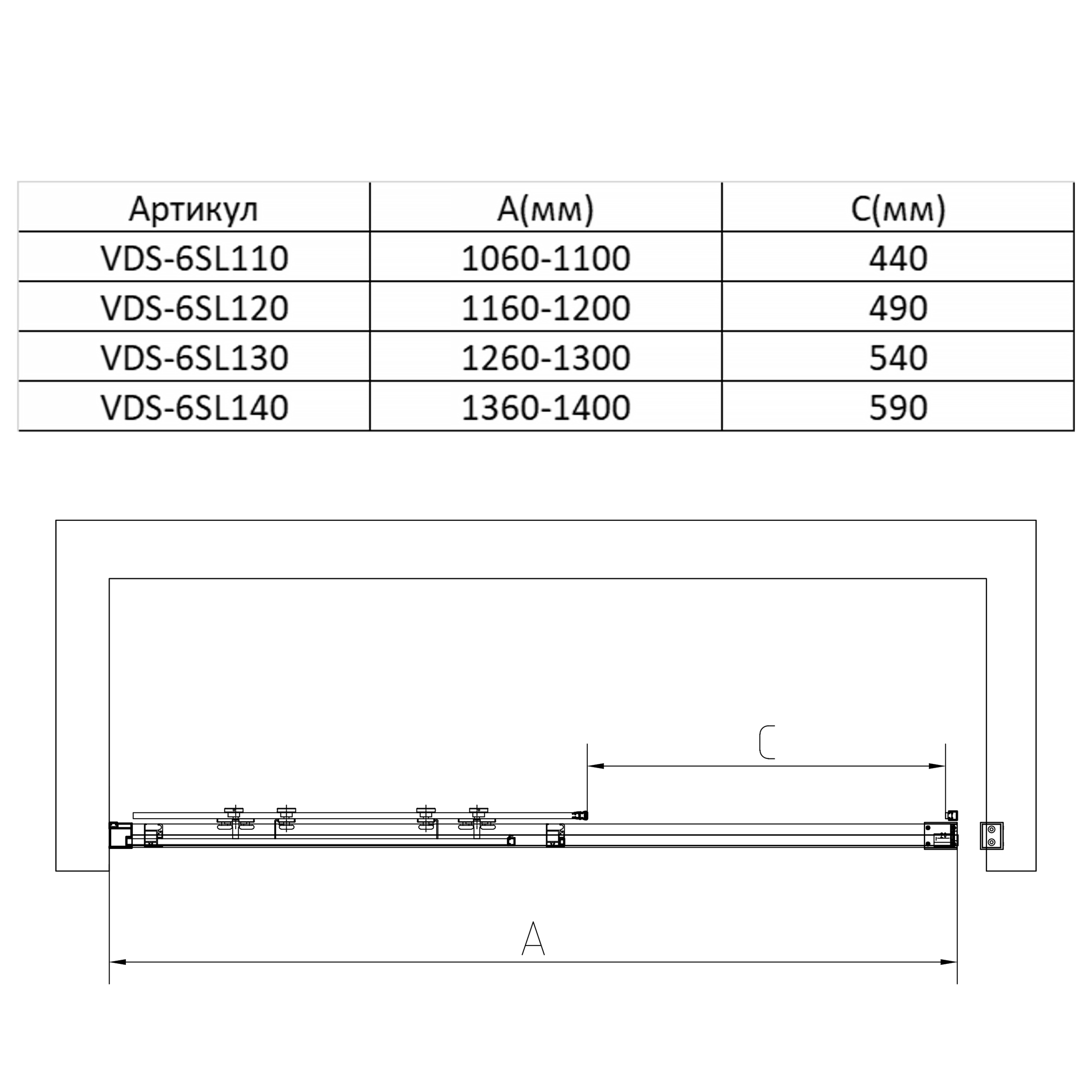 Душевая дверь в нишу Vincea Slim VDS-6SL140CLB 140 см, профиль черный |