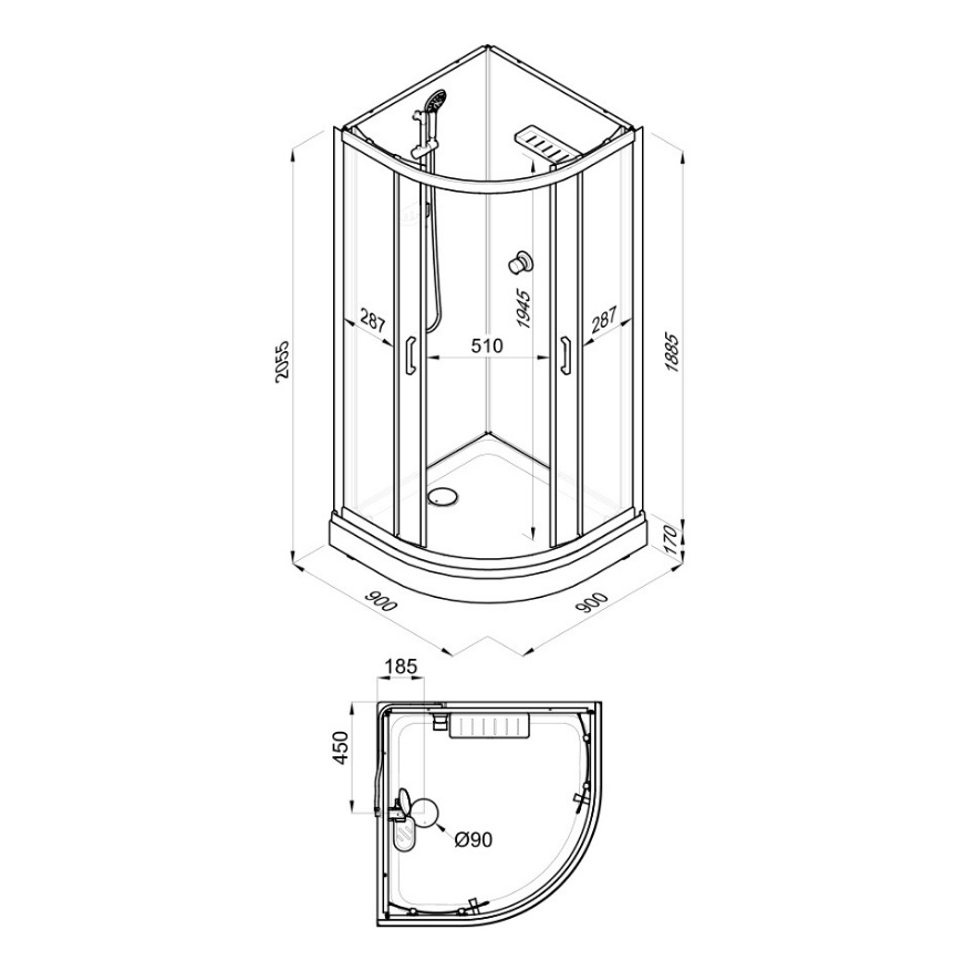 90x90x206 см