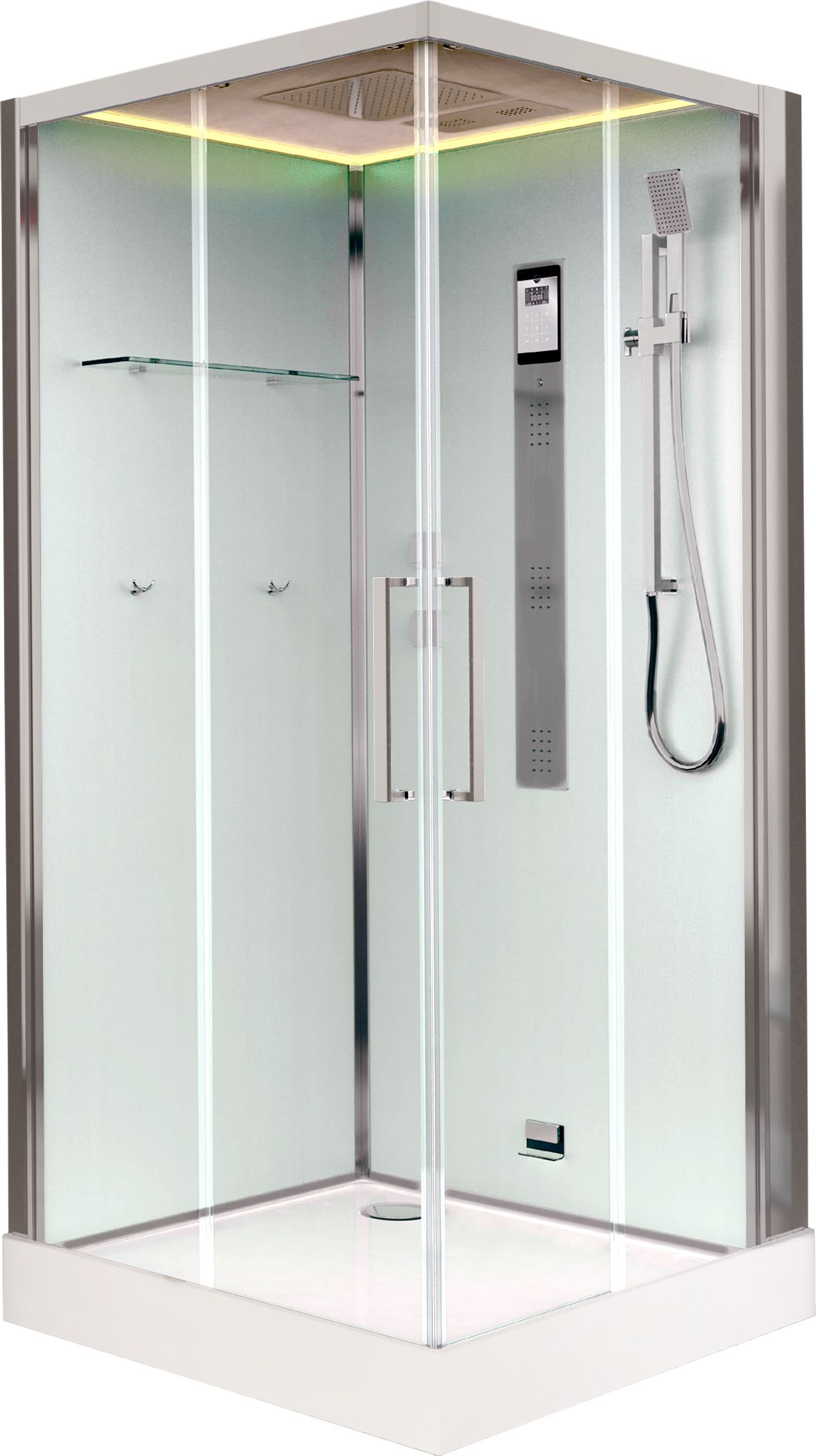 Модель оборудована тропическим душем, гидромассажными форсунками и