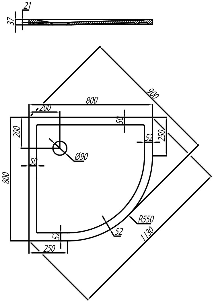 Душевой поддон Акватон Калифорния 80х80, четверть круга |