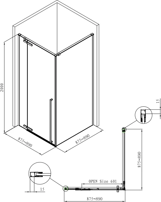 90x90x200 см