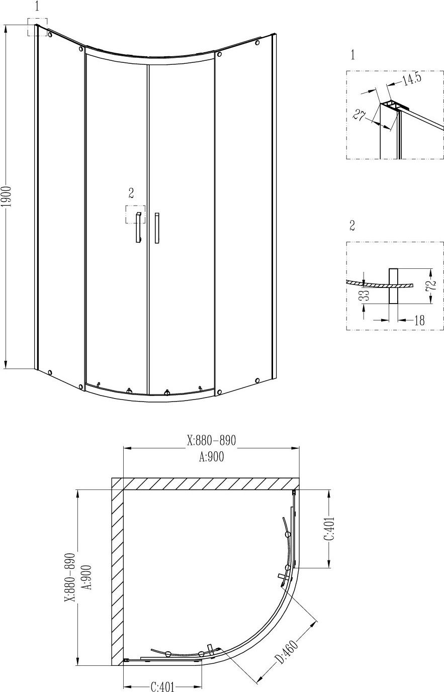 90x90x190 см