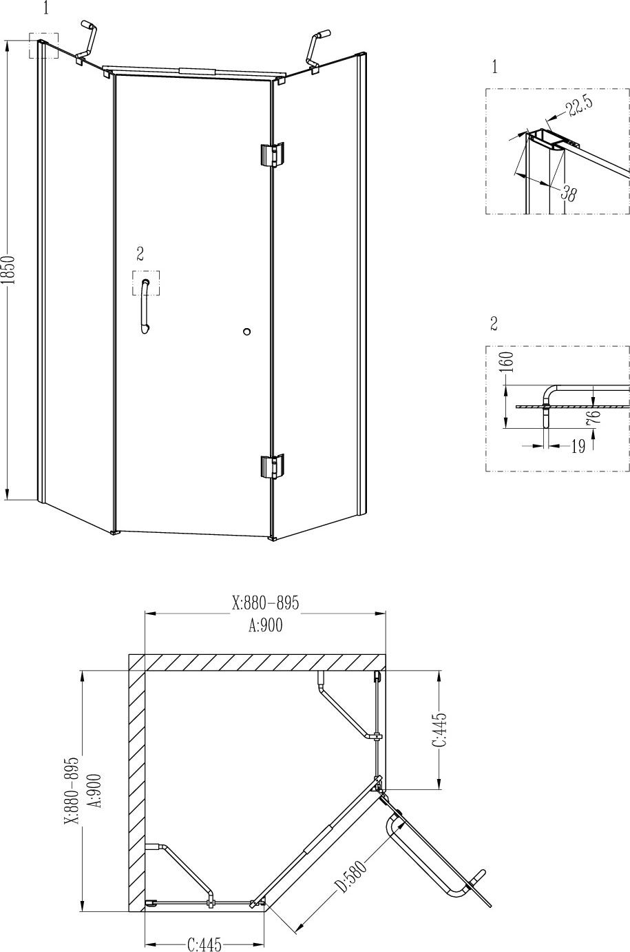 Ширина варьируется в пределах (88x89,5)x(88x89,5)x185 см.