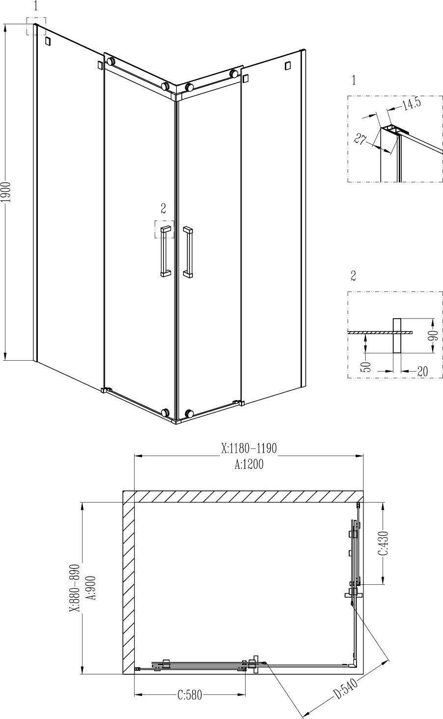 Душевой уголок Grossman Cosmo GR-1120L 120x90