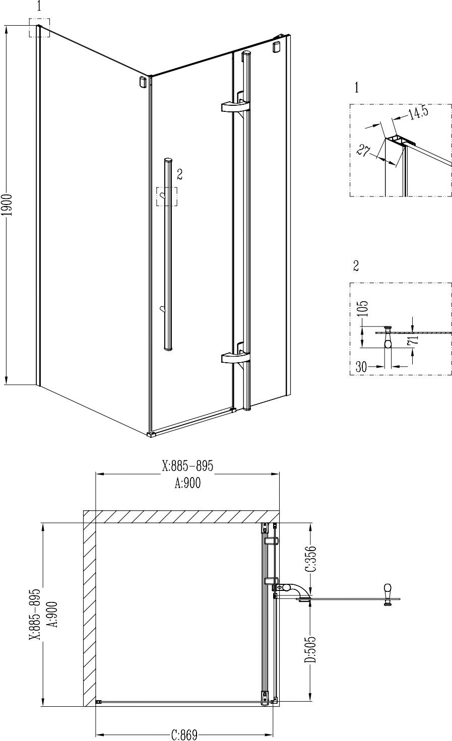 90x90x190 см