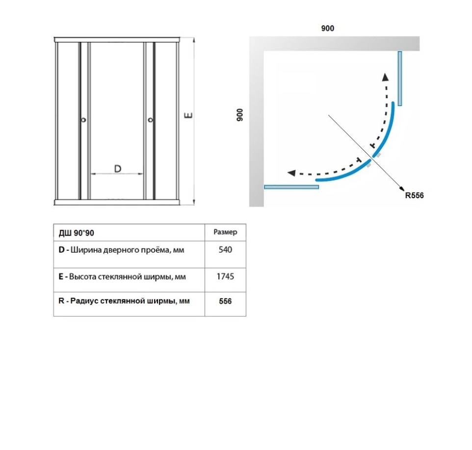 90x90x174,5 см