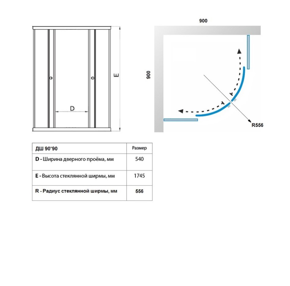 90x90x174,5 см