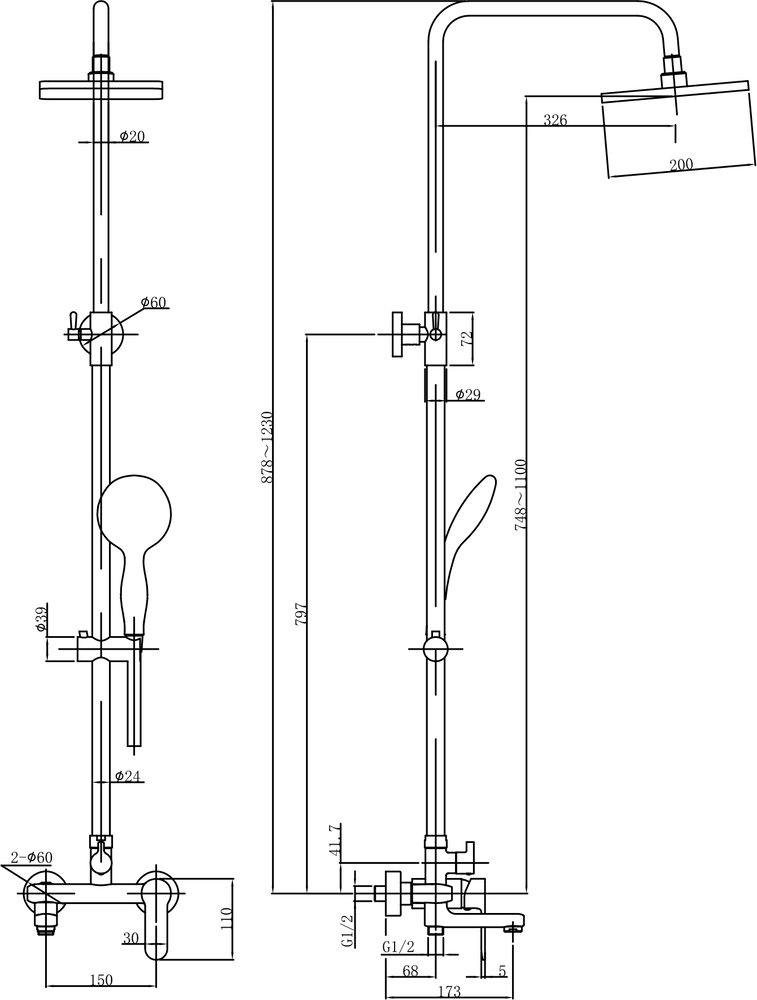 душевой шланг, душевая лейка, держатель для душа, переключатель потоков