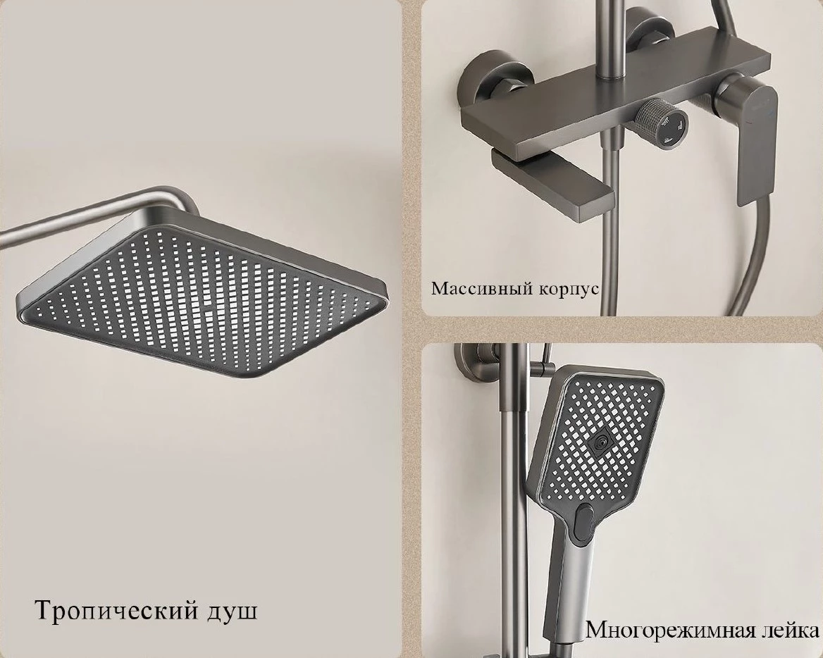 душевой шланг, душевая лейка, кронштейн для верхнего душа, держатель для душа, переключатель потоков