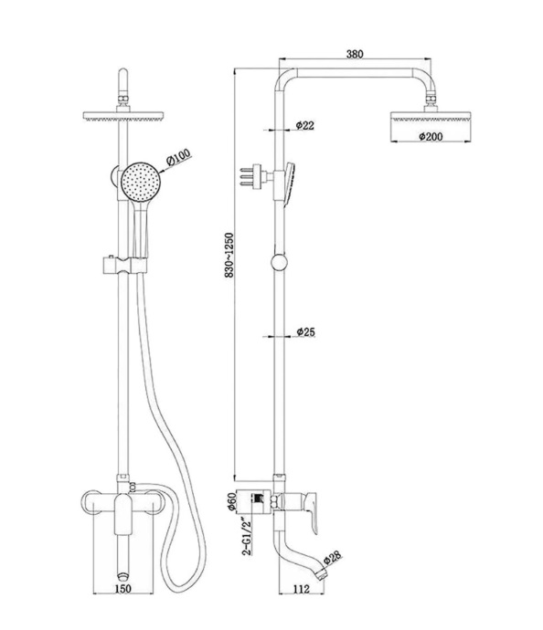 Размер верхнего душа: