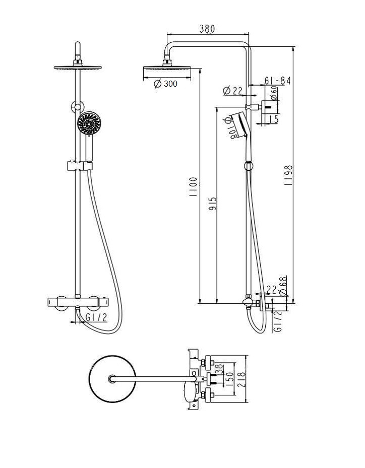 Размер верхнего душа:
