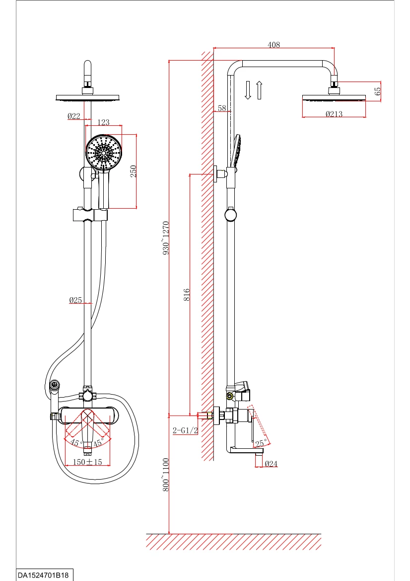 Душевая стойка D&K Bayern.Fürth DA1524701B18 с гигиеническим душем