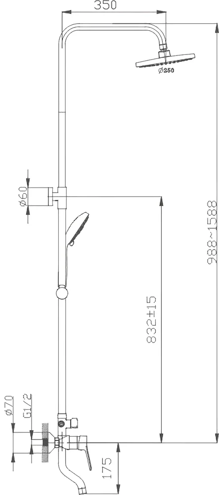 Размер верхнего душа, см: