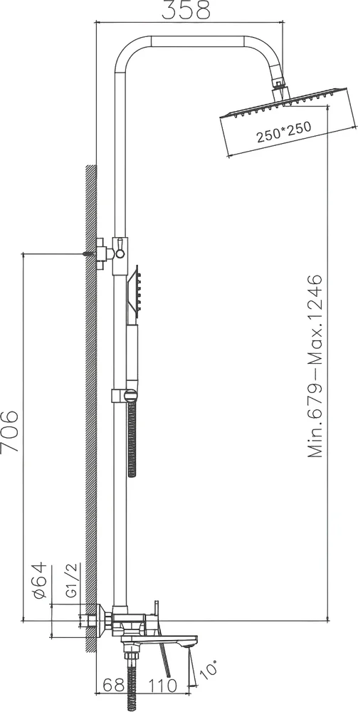 душевой шланг, душевая лейка, кронштейн для верхнего душа, держатель для душа, переключатель потоков
