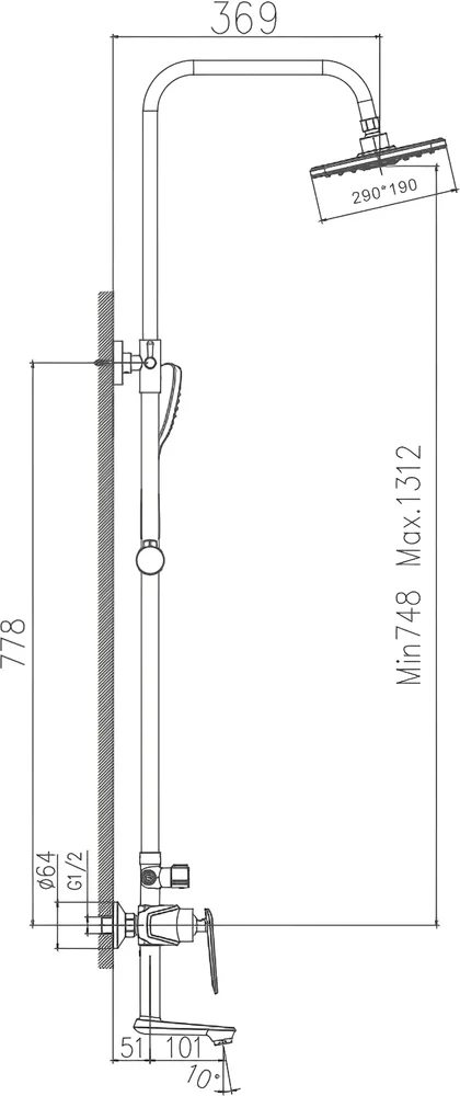 душевой шланг, душевая лейка, кронштейн для верхнего душа, держатель для душа, переключатель потоков