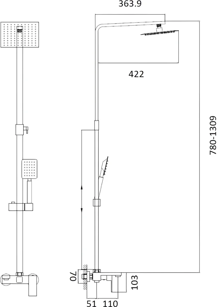душевой шланг, душевая лейка, кронштейн для верхнего душа, держатель для душа, переключатель потоков