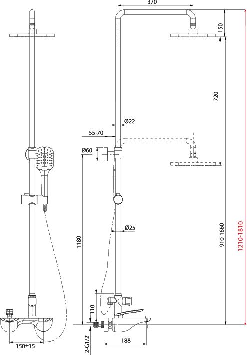 работает в режиме «Тропический дождь». Гибкий и прочный шланг 1,5 м