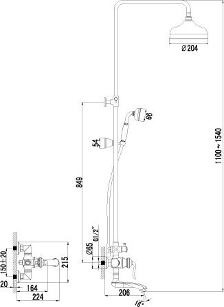 1-функциональный ручной душ. Регулируемая по высоте штанга