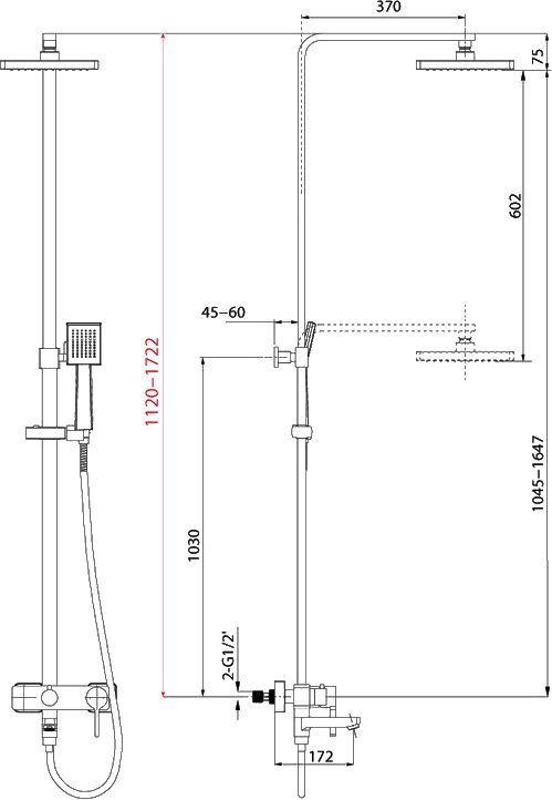 высоте. Верхняя душевая лейка работает в режиме «Тропический
