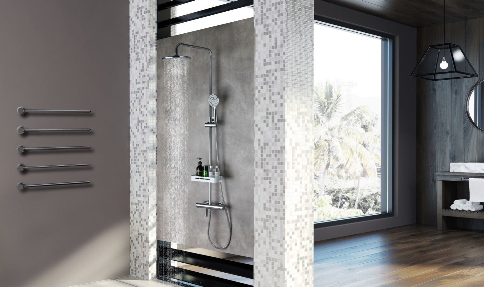 душевой шланг, душевая лейка, аэратор, душевая штанга, полочка, держатель для душа, крючок, переключатель потоков