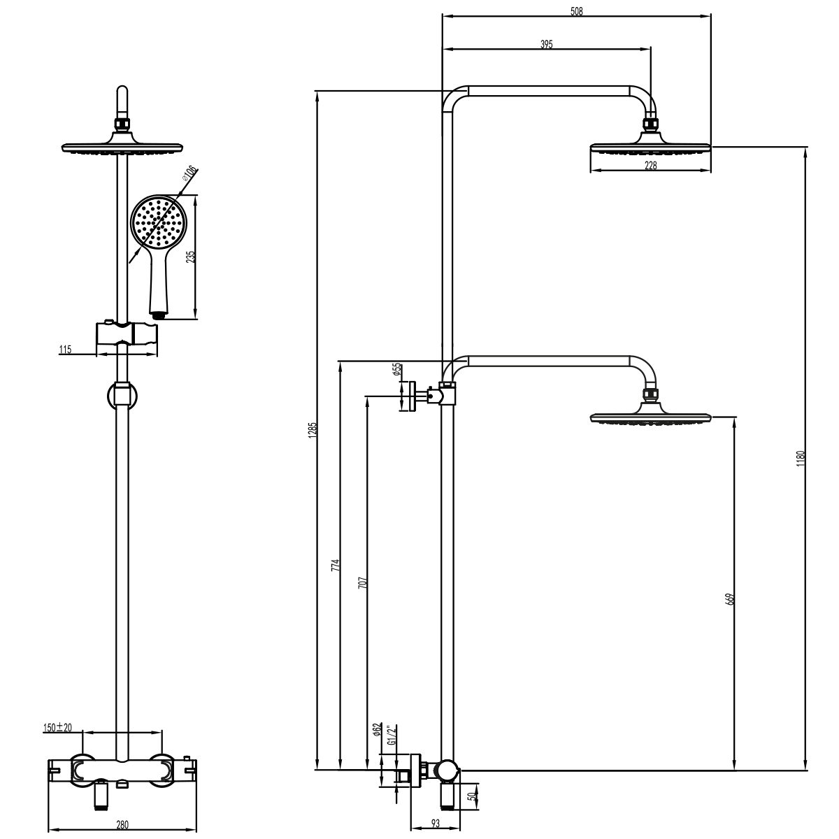 Размер верхнего душа, см: