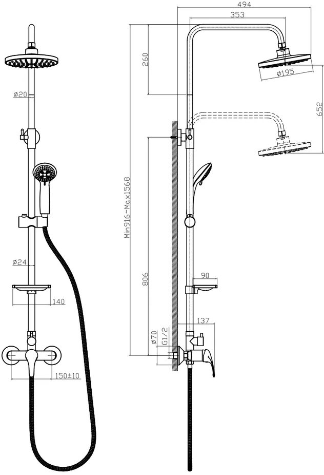 Душевая стойка Rossinka A A35-45