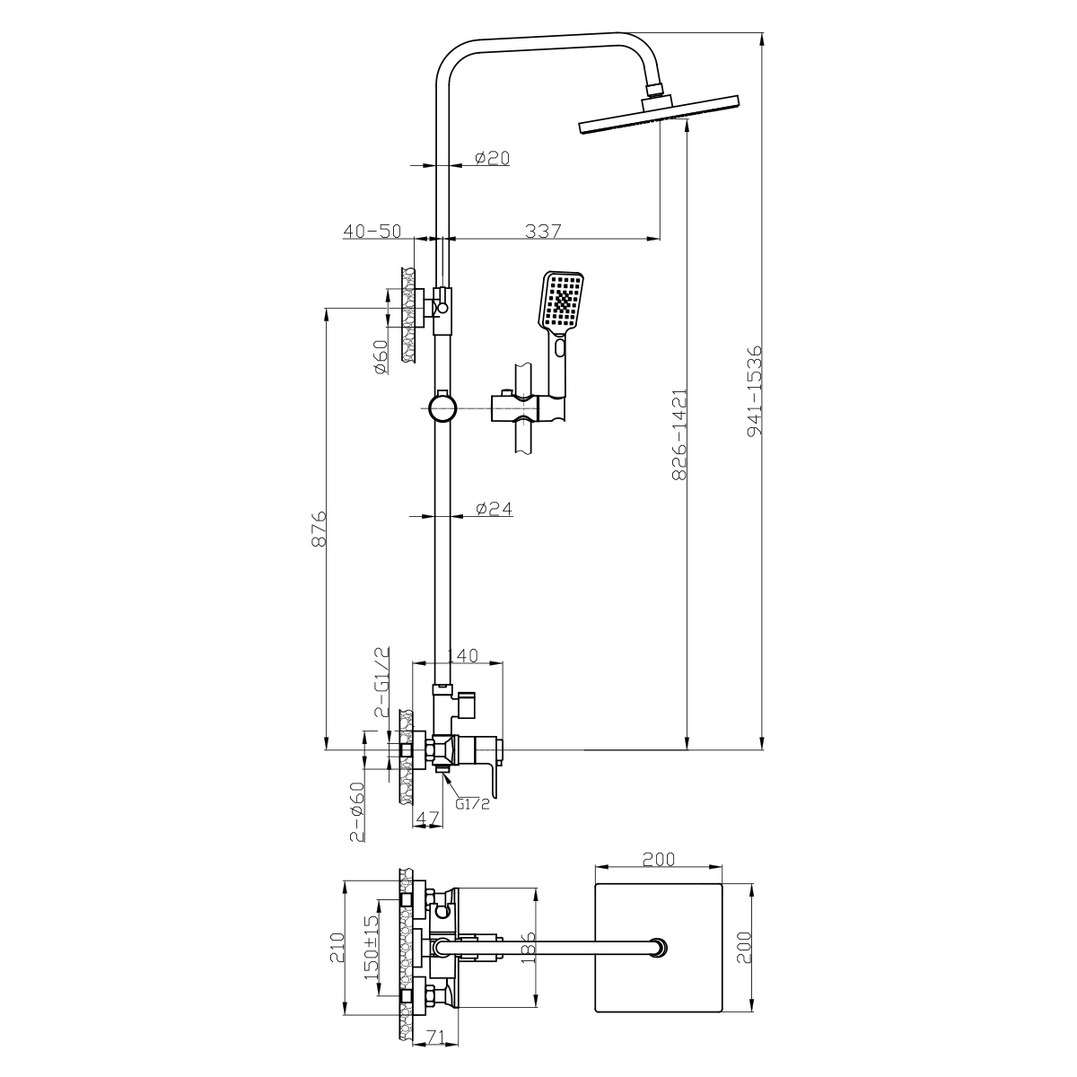 Душевая стойка Rossinka RS50-45 |
