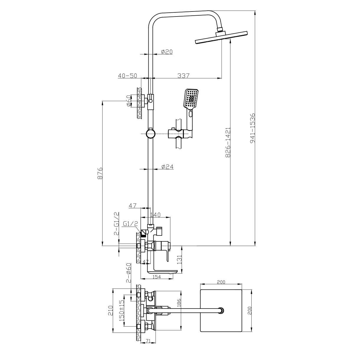 Душевая стойка Rossinka RS50-46 |