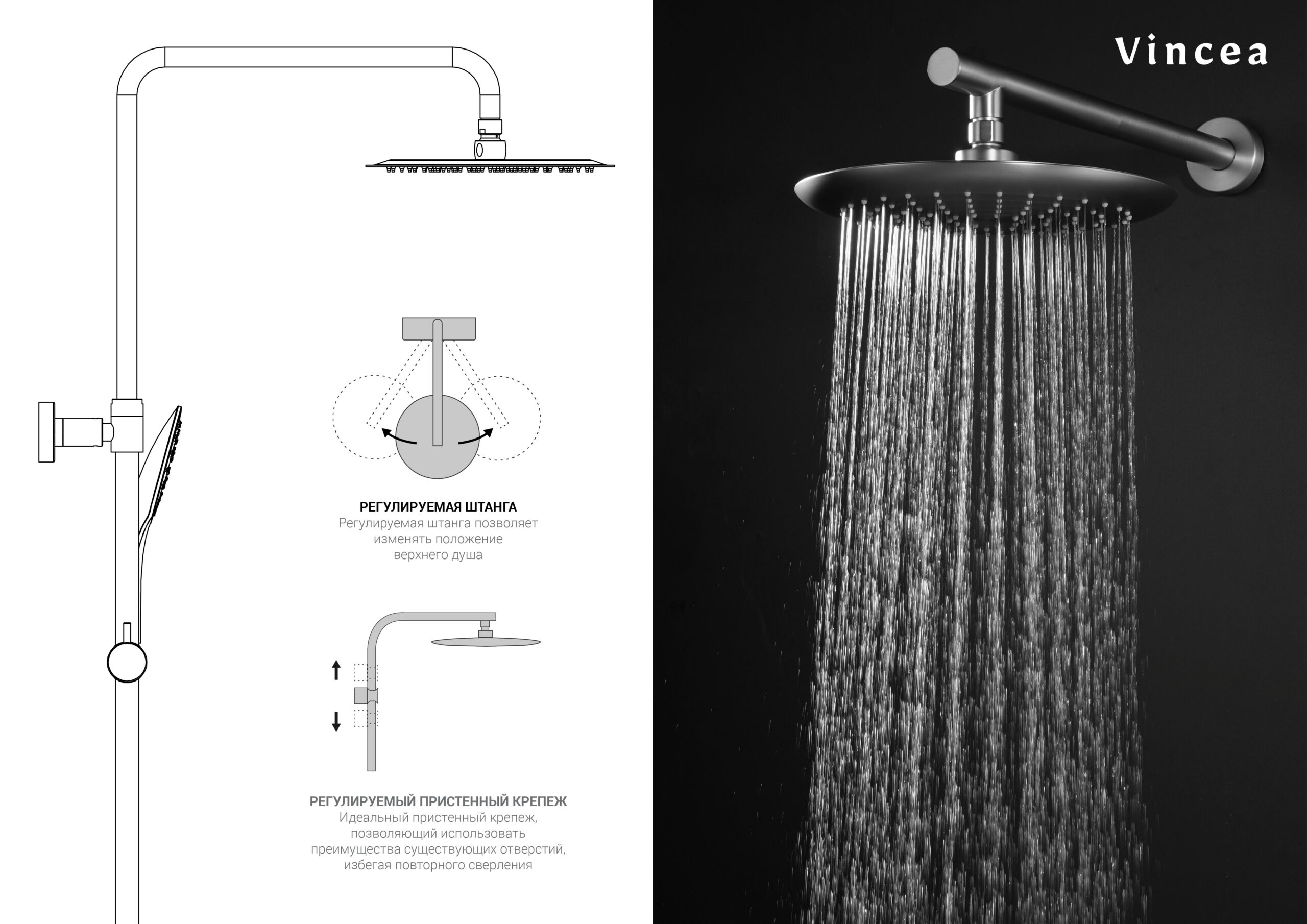 Душевая стойка Vincea Esse VSFS-1E0TMB черный матовый |