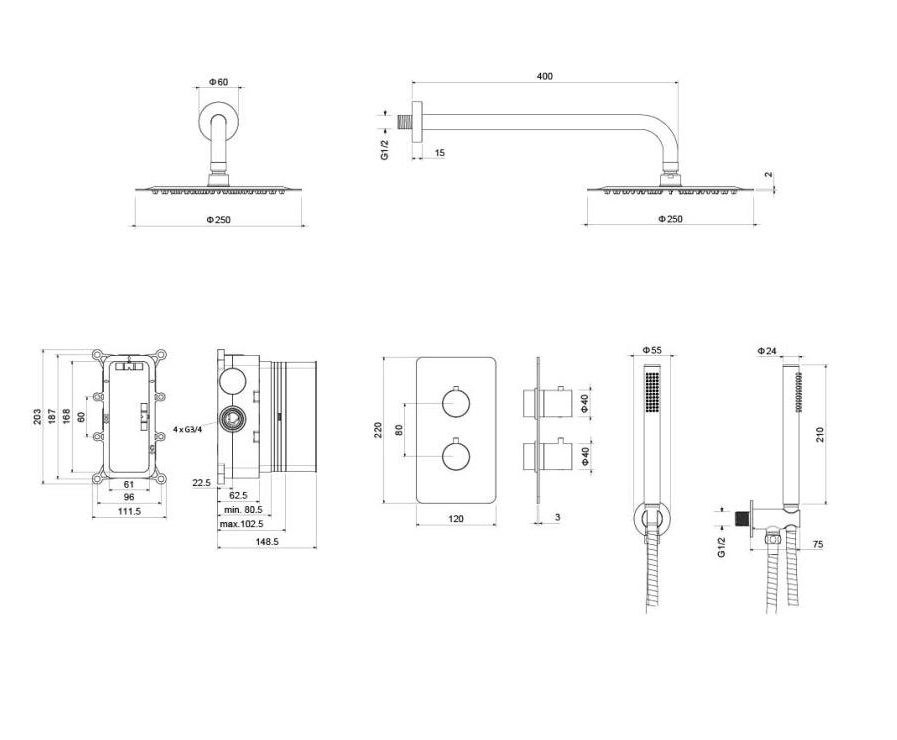 Встраиваемый душевой комплект Акватек Европа AQ1376BG 3 в 1 |