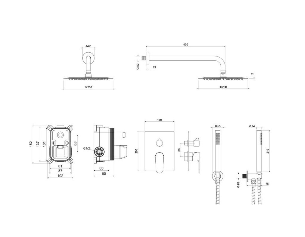 Встраиваемый душевой комплект Акватек Оберон AQ1272CR 3 в 1 |
