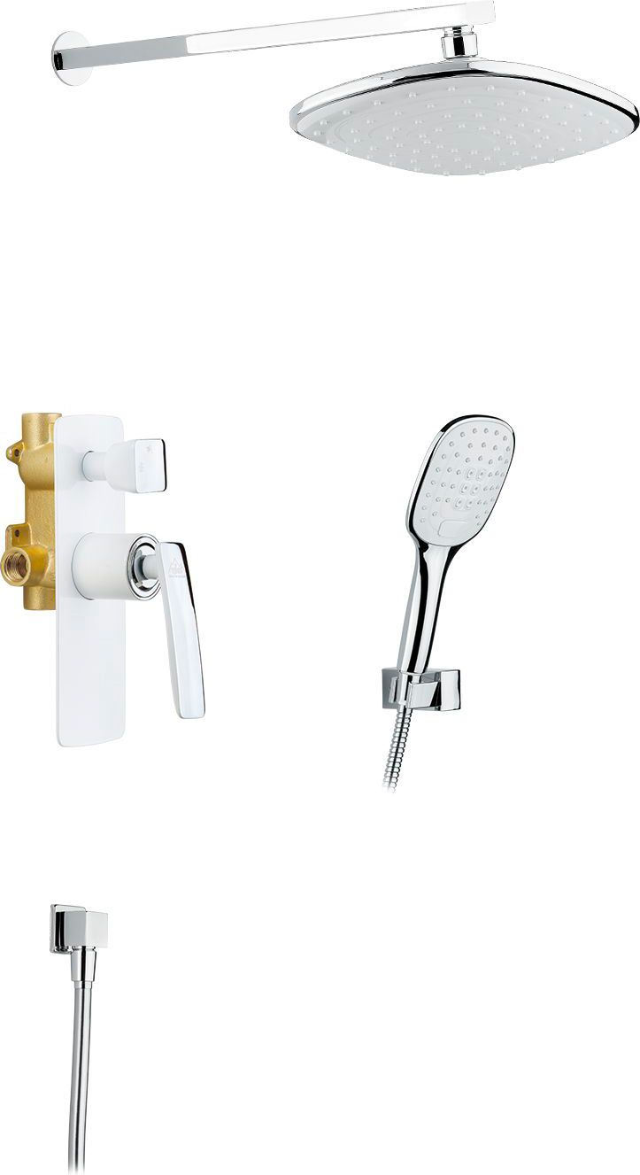 включает в себя верхний душ с кронштейном, двухрежимный ручной душ,