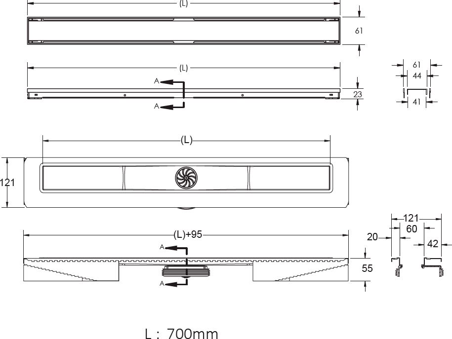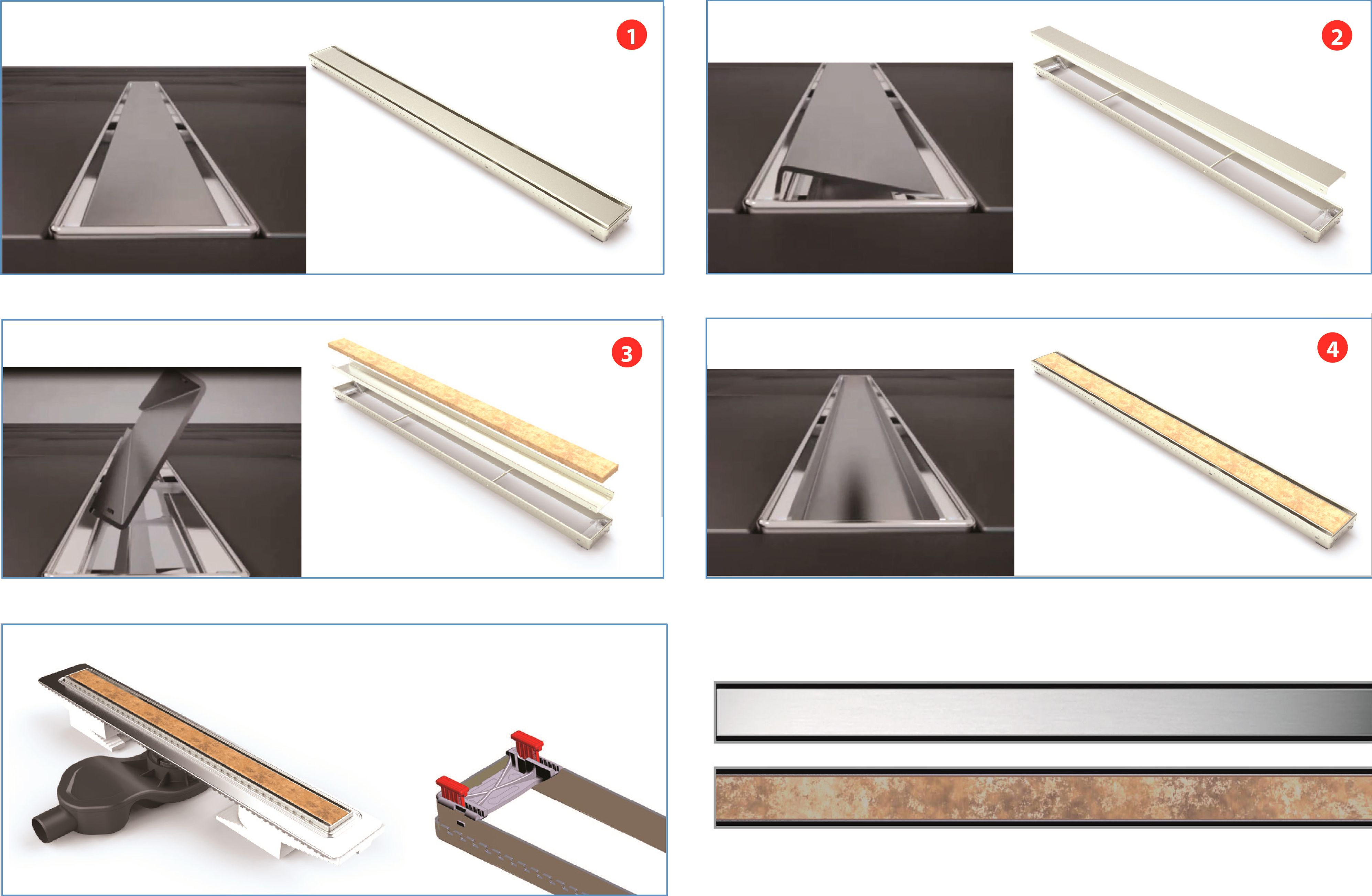 Решетка, желоб-водосток и декоративные заглушки из нержавеющей стали AISI 304