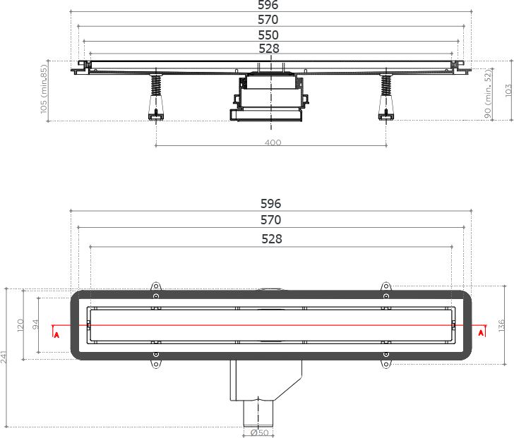 Система 2-в-1: возможность использования самостоятельной решетки душевого лотка металлической частью кверху или книзу, в последнем случае на поверхности будет черное стекло. Для того, чтобы изменить способ применения, необходимо перевернуть решетку