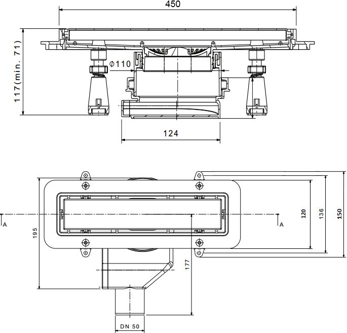Душевой лоток Pestan Confluo Premium Line 450 с решеткой |