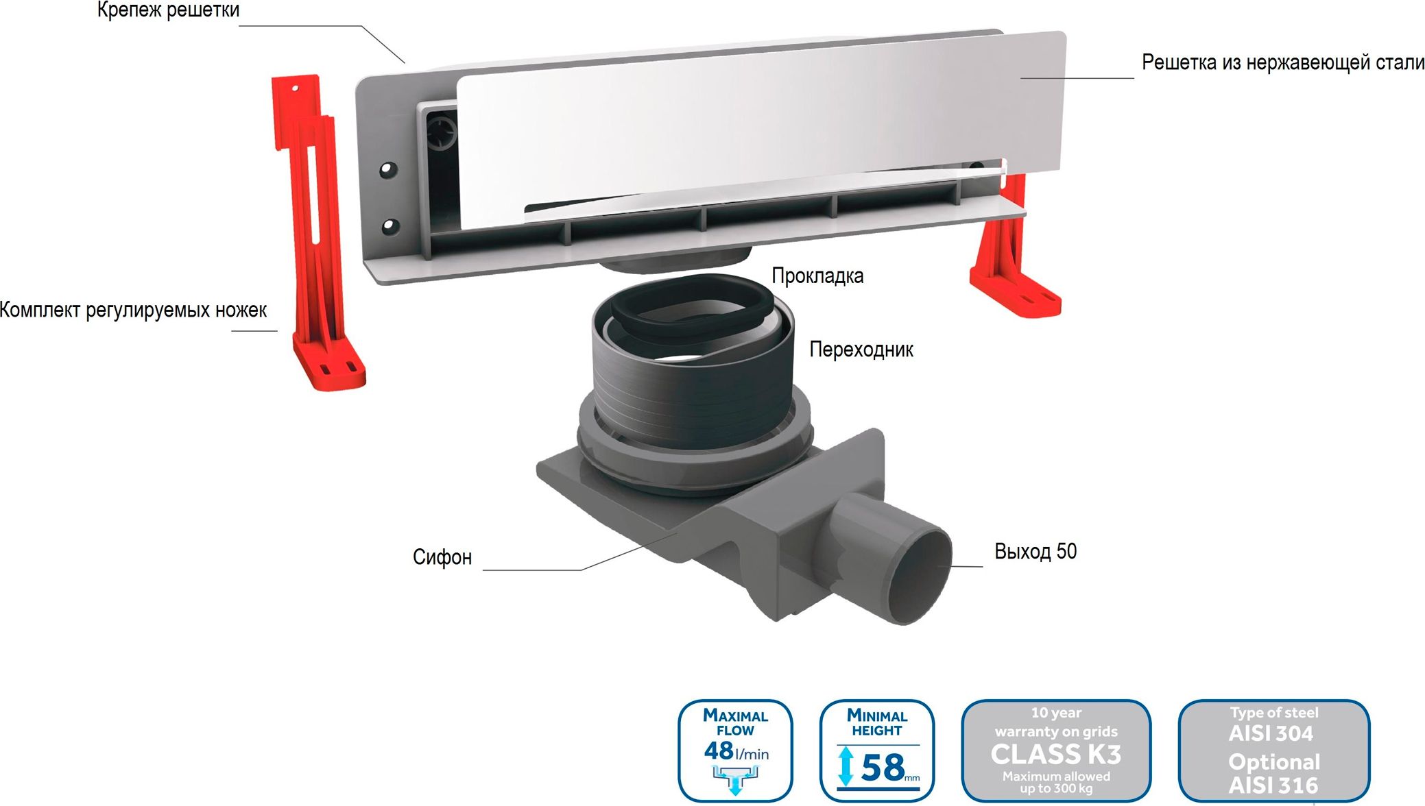 предусмотрен гидрозатвор. Модель поставляется с комплектом для