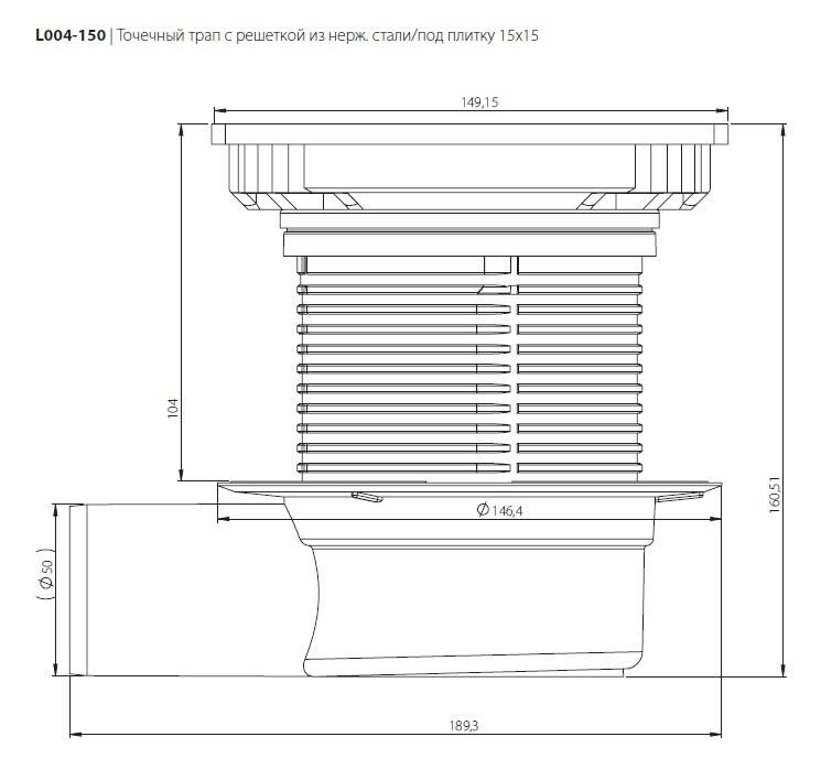 Душевой трап Logan L003-110 с сухим затвором, щелевая/под плитку решетка из нержавеющей стали