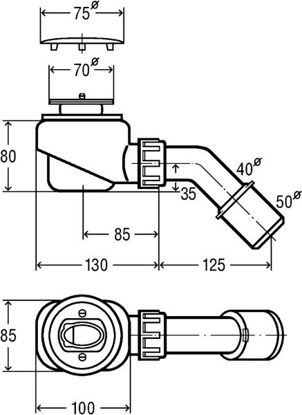 Диаметр сливного отверстия 52 мм, высота монтажа 80 мм