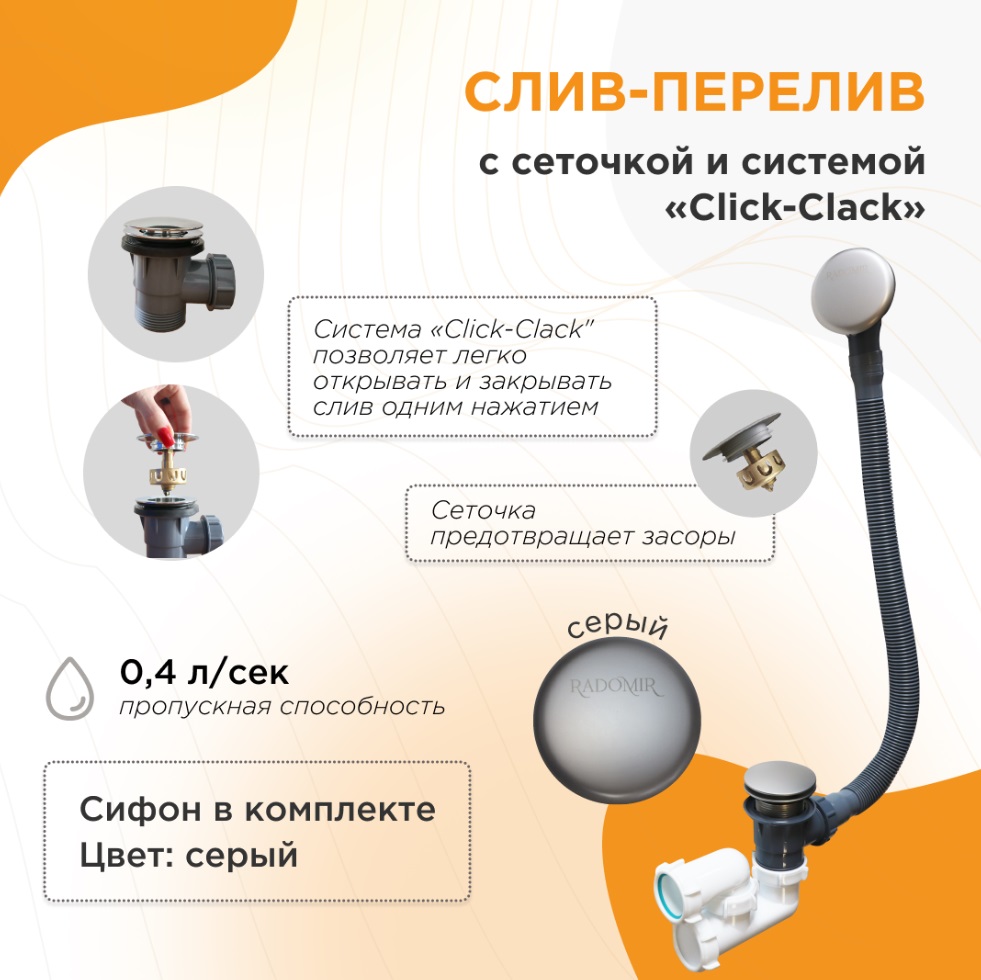 Слив-перелив Radomir клик-клак серый