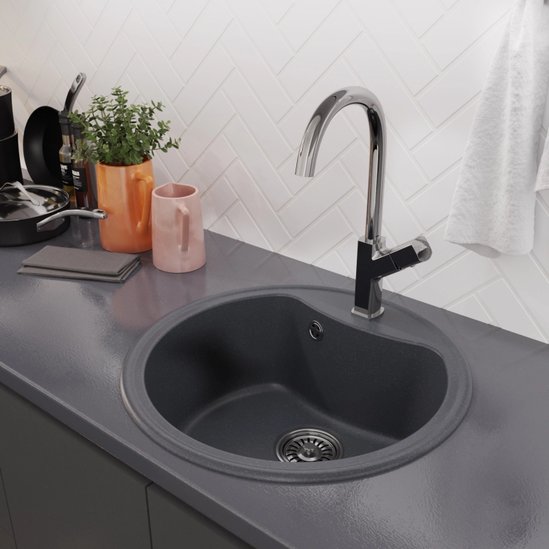 Подобный состав делает кухонные гранитные мойки прочными и
