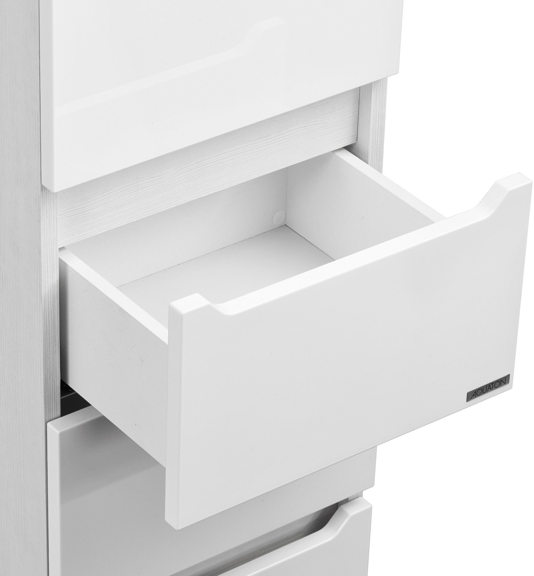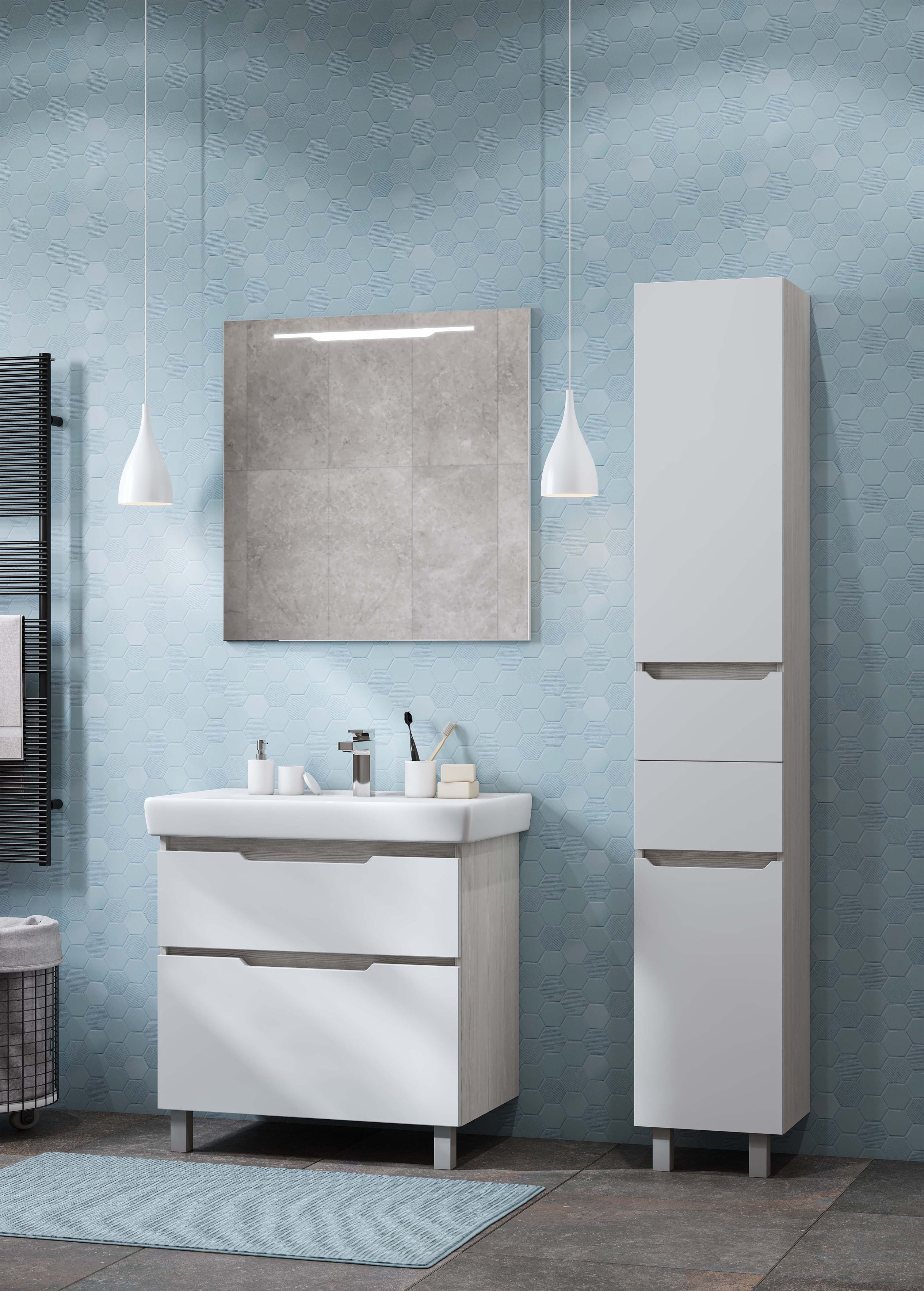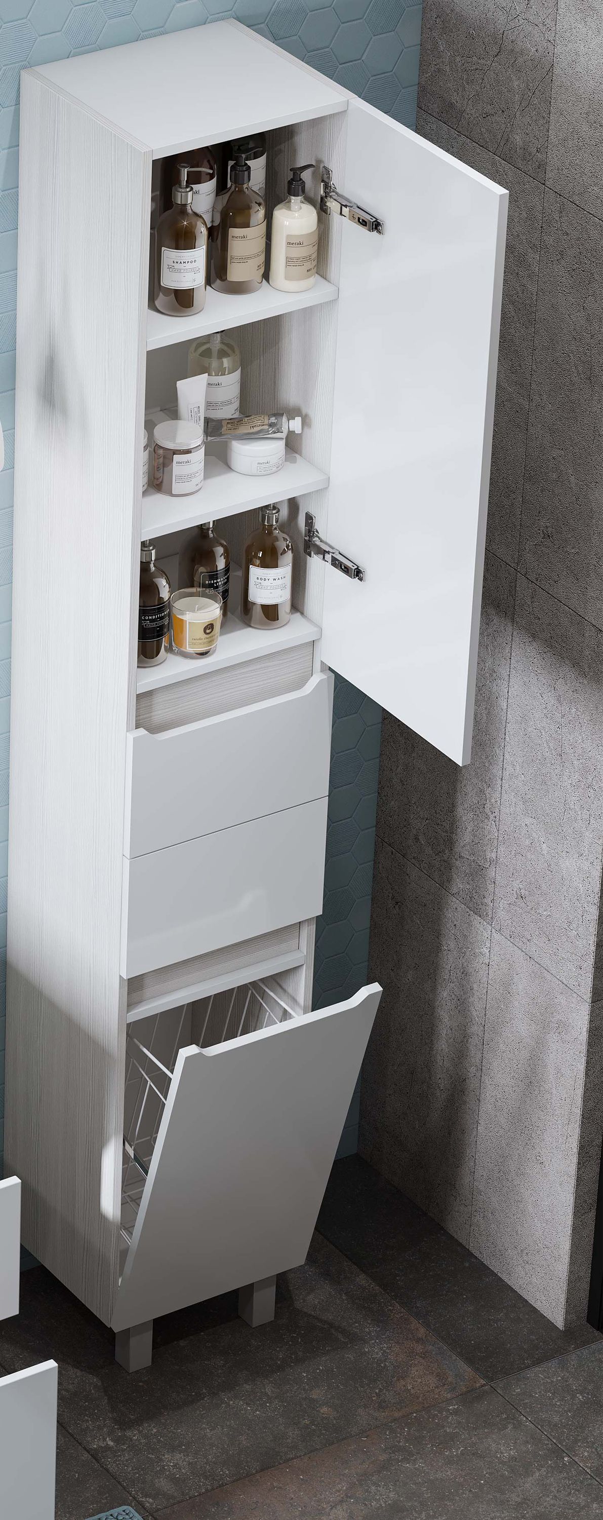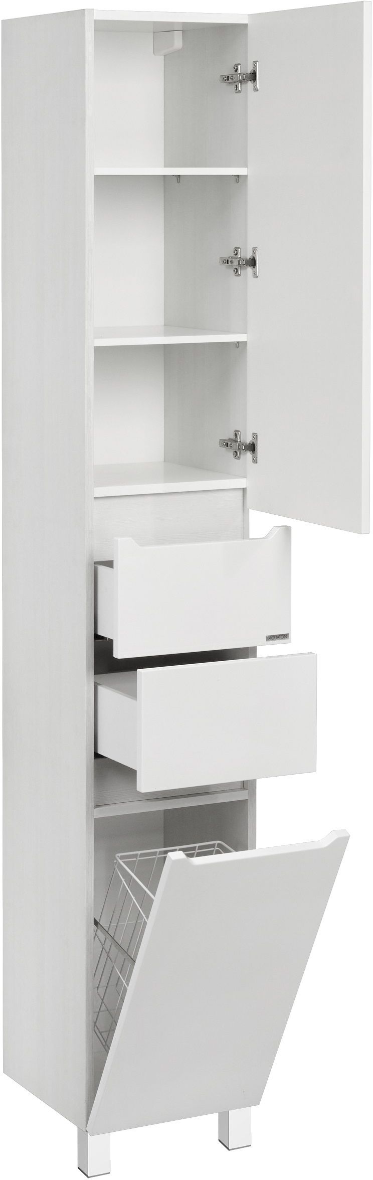 Шкаф-пенал Акватон Дакота белый/выбеленное дерево с бельевой корзиной 1A203203DAAY0