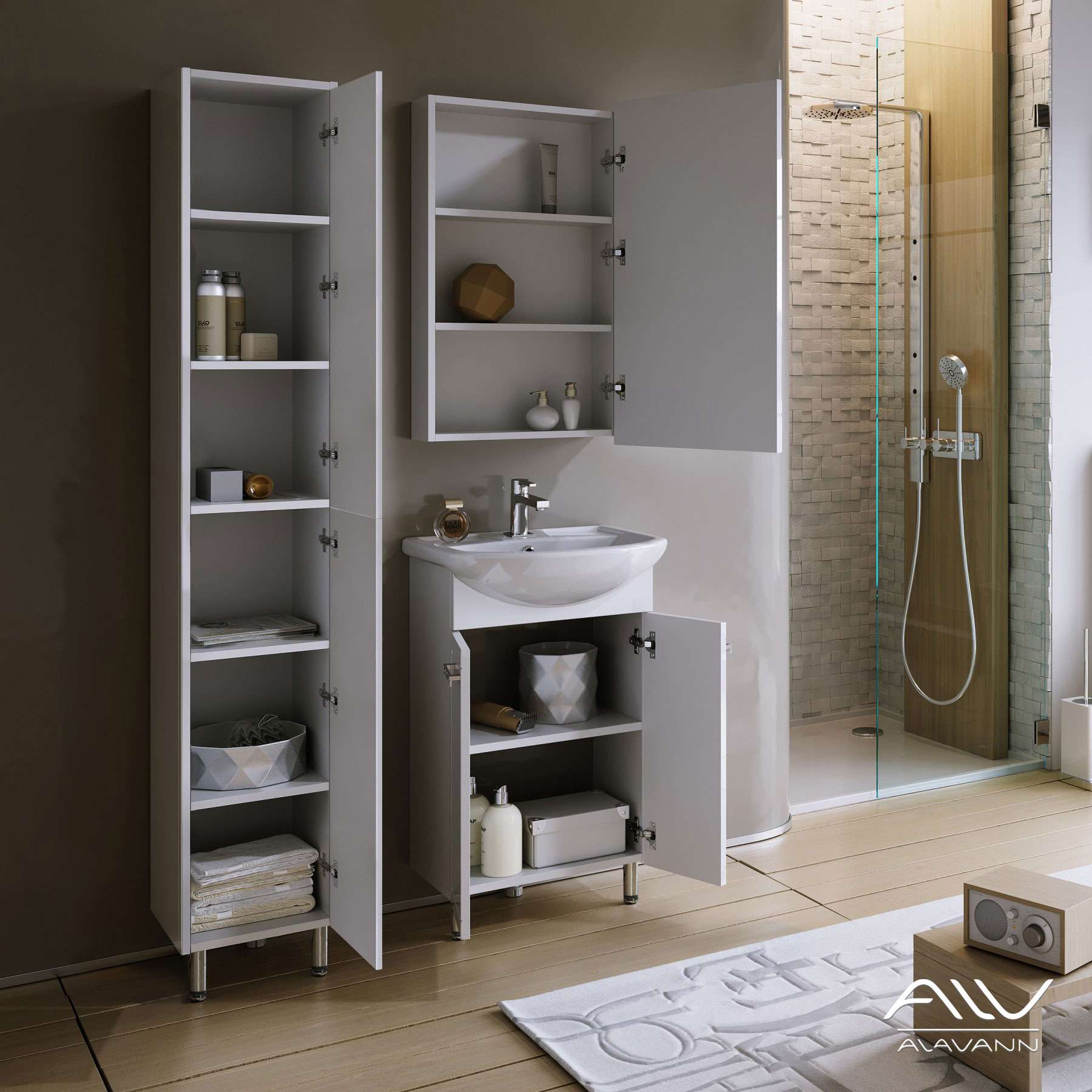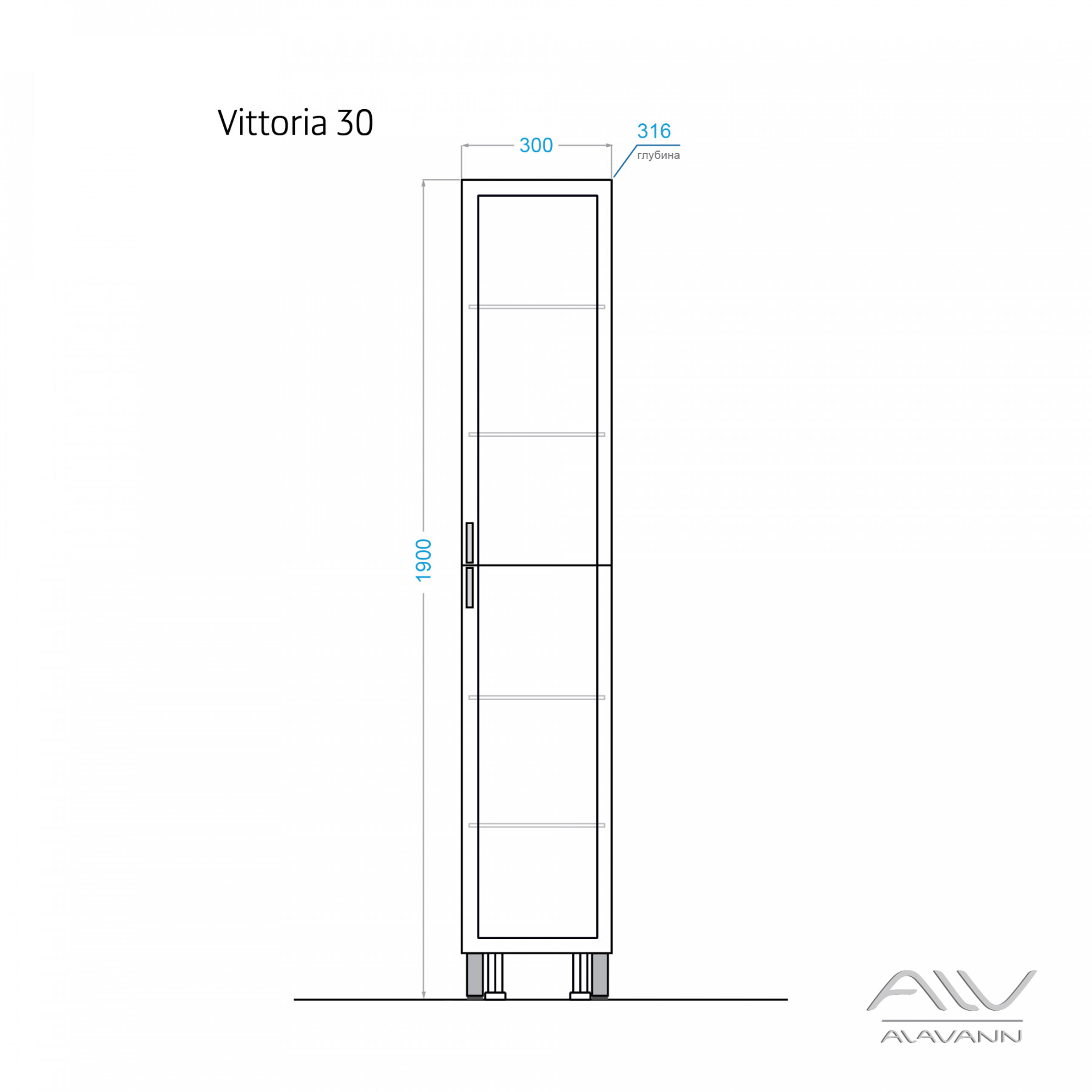 Пенал Vittoria 30 – компактная мебель для ванной, которая помогает сохранить полезное пространство помещения. Включает в себя два отсека за распашными фасадами, внутри разделенные полками ДСП,