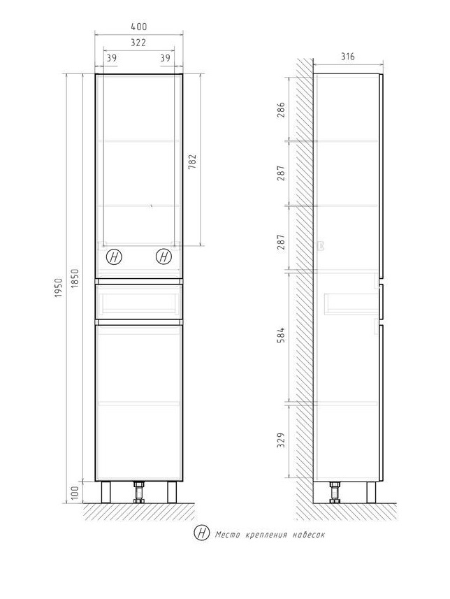 Шкаф-пенал Conty 40 напольный, белый, дуб сонома