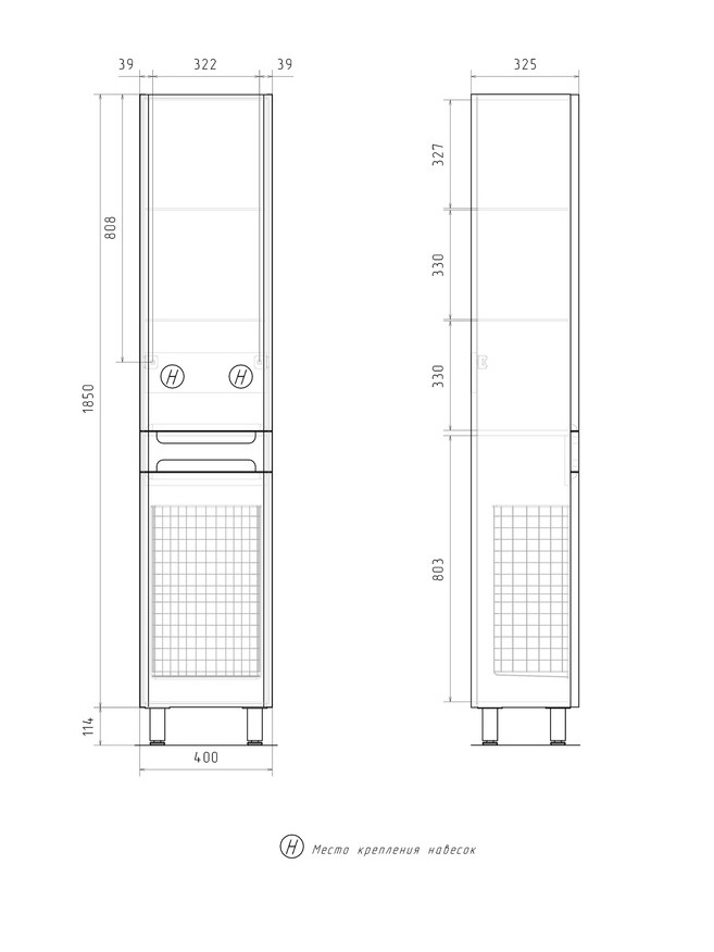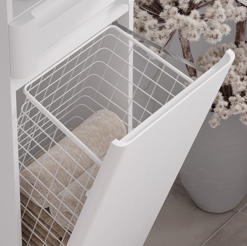 Шкаф-пенал Equil Nice 40 напольный универсальный белый с бельевой корзиной |