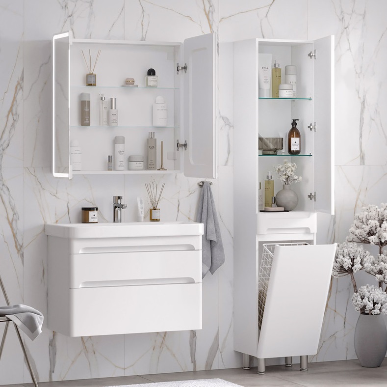 Шкаф-пенал Equil Nice 40 напольный универсальный белый с бельевой корзиной