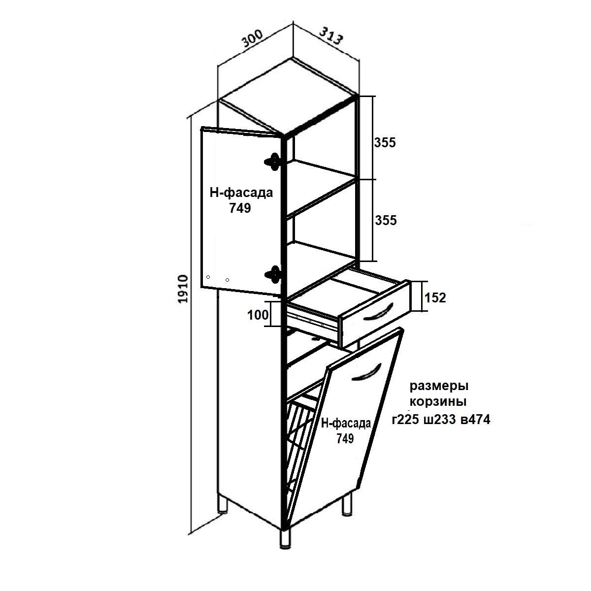 Шкаф-пенал Runo Эконом 30 L с корзиной |