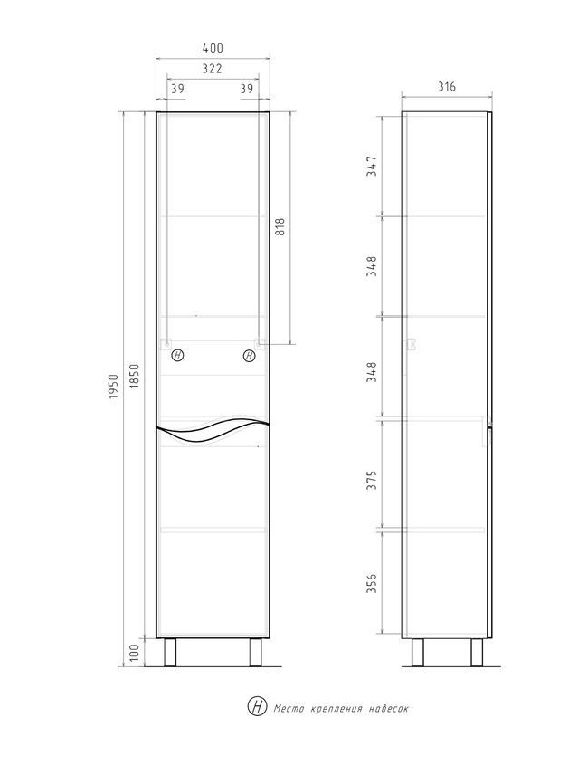 Шкаф-пенал Volna 40 напольный, белый |