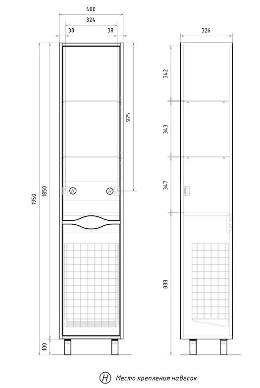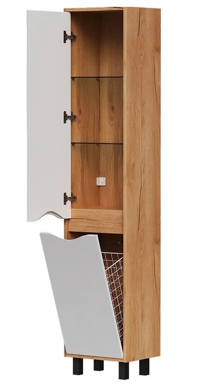 Шкаф-пенал Volna Barney 40 напольный, белый, дуб гудзон с бельевой корзиной |