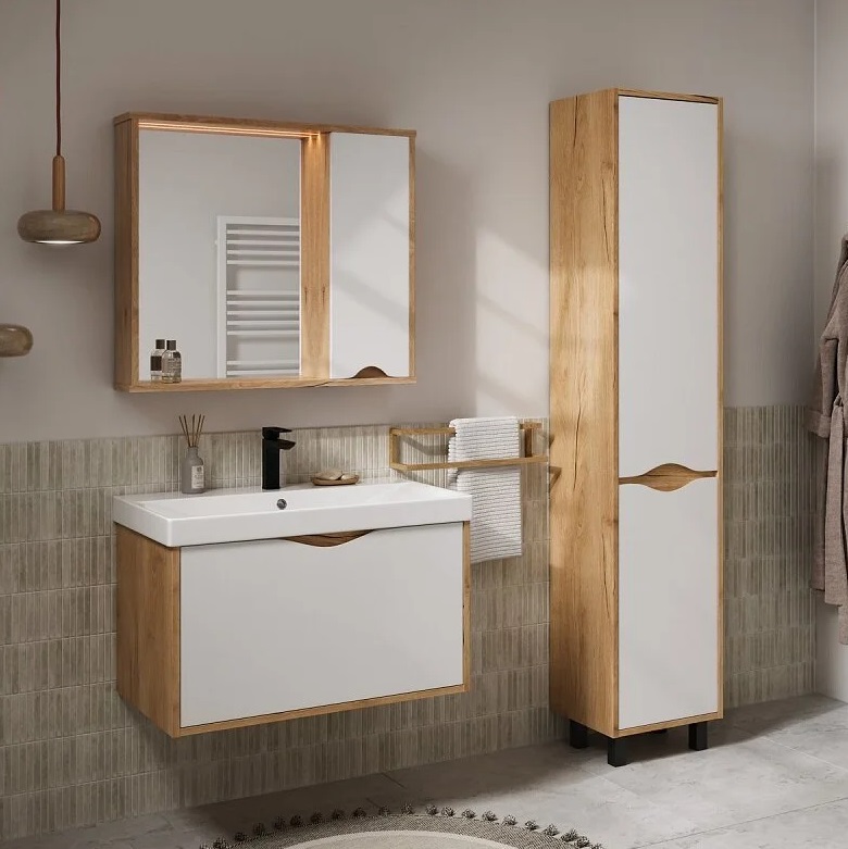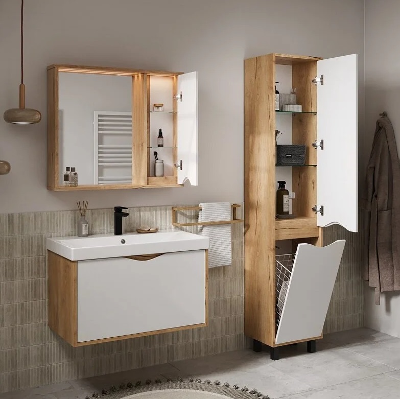 Шкаф-пенал Volna Barney 40 напольный, белый, дуб гудзон с бельевой корзиной